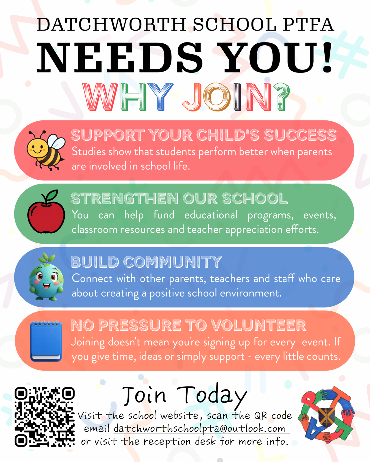 Our Parent Teacher and Friends Association plays an important part in enhancing children’s experiences at school. Our dedicated and extremely supportive committee members arrange a full programme of fundraising activities and social events for the year, for pupils and adults, including supporting our Christmas performances, our Summer Fete, Pupil Discos, Quiz Nights, sponsored school events and cake sales.