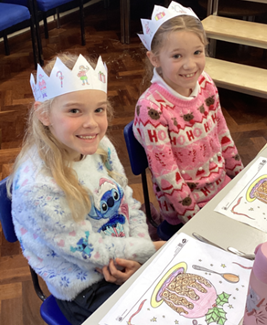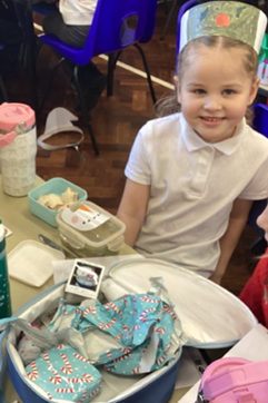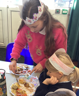 Year 5 and Year 6 children did a fantastic job looking after younger children, cutting up food, helping them pull crackers and reading out jokes. Whether it was a Christmas dinner or a Christmas-themed packed lunch, everyone was able to eat together and enjoy sharing the celebration.
