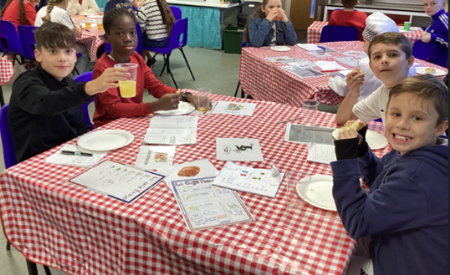 Every class, from Willow to Year 6, ordered ‘un pain au chocolat’, ‘un croissant’ or ‘une brioche’ to eat and ‘un jus de pomme’, ‘un jus d’orange’ or ‘de l’eau’ to drink.
